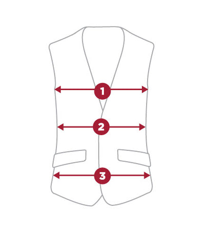 - Chest Waistcoat measured flat across the front at the chest (armpit to armpit)